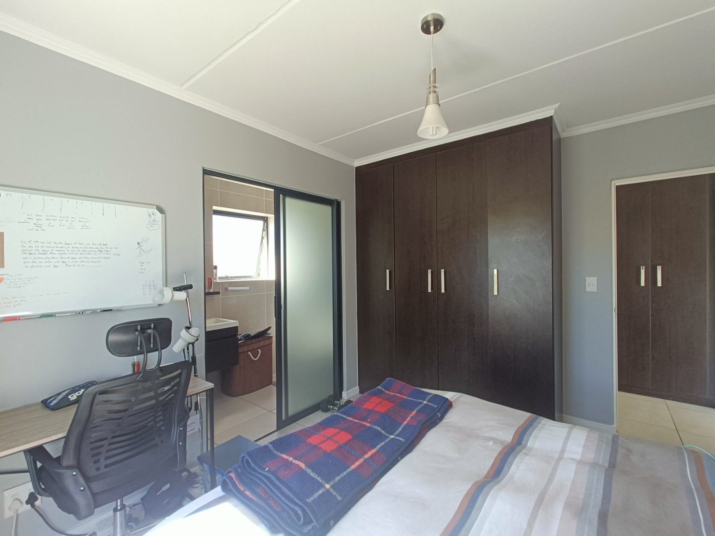 Three bedrooms all with built in cupboards. Main bedroom with en-suite bathroom with shower. Full family bathroom.